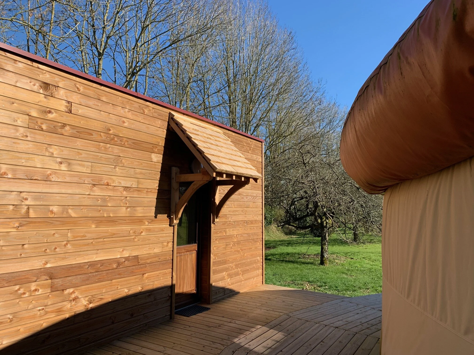 La yourte de style contemporain répond aux normes RT2012.